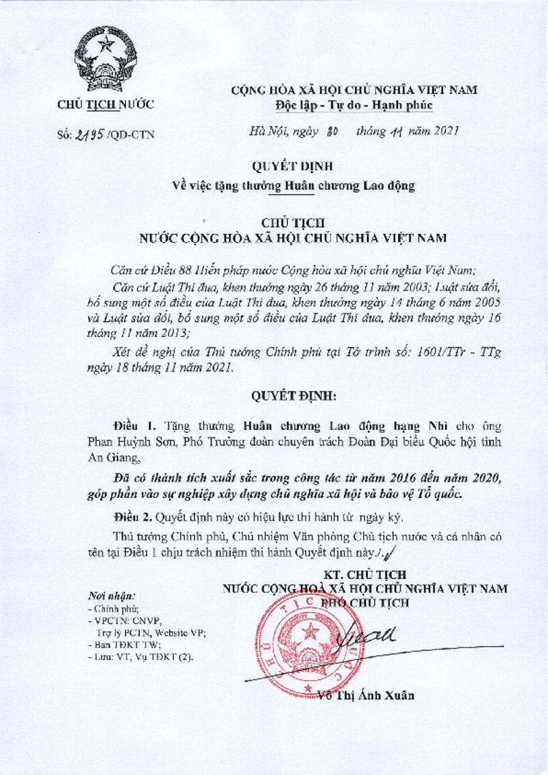 | Số hiệu | 2195/2021/QĐ-CTN | Cơ quan ban hành | |