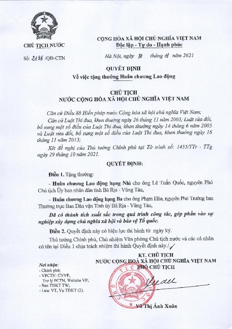 | Số hiệu | 2196/2021/QĐ-CTN | Cơ quan ban hành | |