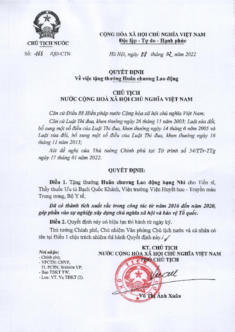 | Số hiệu | 166/2022/QĐ-CTN | Cơ quan ban hành | |