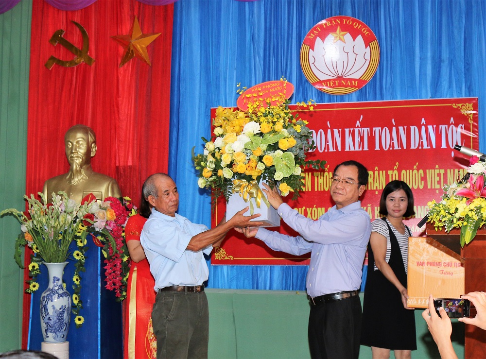 Chủ nhiệm Văn phòng Chủ tịch nước Đào Việt Trung tặng hoa chúc mừng khu dân cư Chiền Nguấn.