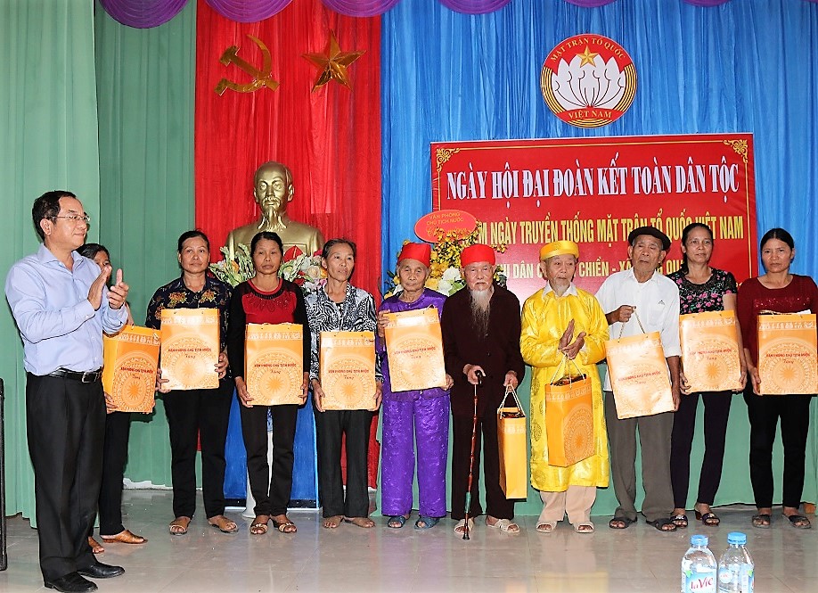 Nhân dịp này, đồng chí Đào Việt Trung và các đại biểu tham dự Ngày hội đã tặng hoa chúc mừng khu dân cư Chiền Nguấn, tặng quà các gia đình tiêu biểu, gia đình chính sách và các hộ nghèo thuộc cụm dân cư Chiền Nguấn.