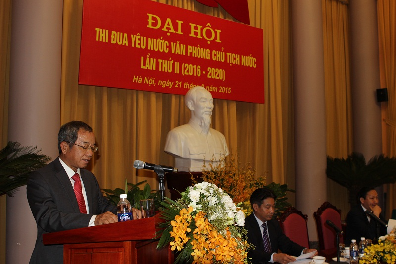 Phó Chủ tịch nước đánh giá cao sự nỗ lực cố gắng của toàn thể đội ngũ cán bộ, công chức, nhân viên trong Văn phòng trong việc lãnh đạo, chỉ đạo, tổ chức thực hiện các phong trào thi đua và công tác khen thưởng. Nhận thức được vai trò, ý nghĩa, tầm quan trọng của công tác thi đua khen thưởng tại một cơ quan có lãnh đạo Đảng, Nhà nước làm việc; nơi diễn ra nhiều hoạt động có liên quan đến thi đua, khen thưởng; càng đặc biệt hơn khi Cơ quan đó lại là nơi Chủ tịch Hồ Chí Minh đã từng sống, làm việc; Người Thầy đã khởi xướng, phát động nhiều phong trào thi đua yêu nước và cũng là Người thực hiện thi đua xuất sắc nhất, trong 5 năm qua, cán bộ, công chức, nhân viên Văn phòng Chủ tịch nước đã làm tốt việc vận dụng tư tưởng thi đua yêu nước của Bác vào công việc hàng ngày "Công việc hàng ngày chính là nền tảng của thi đua". Công việc của Văn phòng Chủ tịch nước là tham mưu, giúp việc và tổ chức phục vụ Chủ tịch nước, Phó Chủ tịch nước thực hiện nhiệm vụ và quyền hạn theo quy định của Hiến pháp, pháp luật, trên các lĩnh vực đối nội, đối ngoại; liên quan cả chức năng lập pháp, hành pháp, tư pháp và tham gia quyết định nhiều vấn đề quan trọng của đất nước. Chủ tịch nước, Phó Chủ tịch nước không thể hoạt động và đạt kết quả nếu không có bộ máy tham mưu, giúp việc là Văn phòng và sự phối hợp của các cơ quan trong bộ máy nhà nước. Kết quả hoạt động của Chủ tịch nước, Phó Chủ tịch nước là sự chung tay, góp sức bằng trí tuệ, tình cảm và sự quyết tâm của toàn thể cán bộ, đảng viên, nhân viên trong Cơ quan.