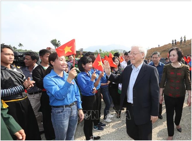 Tổng Bí thư, Chủ tịch nước Nguyễn Phú Trọng đến dự Lễ phát động tại xã Việt Cường, huyện Trấn Yên. Ảnh: Trí Dũng/TTXVN