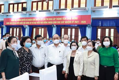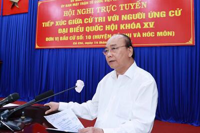 Trong hai ngày 14-15/5, Chủ tịch nước Nguyễn Xuân Phúc cùng các ứng cử viên đại biểu Quốc hội khóa XV, đơn vị bầu cử số 10 (huyện Củ Chi, huyện Hóc Môn) tiếp xúc cử tri theo tại 2 huyện Củ Chi và Hóc Môn (TP HCM). Nhân dịp này, Chủ tịch nước Nguyễn Xuân Phúc đã tới thăm hỏi, tặng quà một số gia đình có công với cách mạng trên địa bàn các huyện Củ Chi, Hóc Môn.