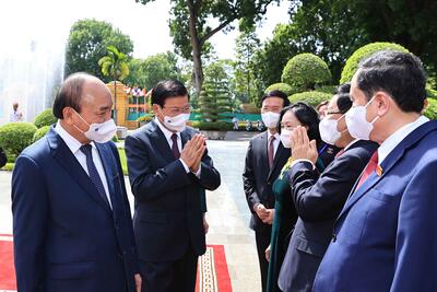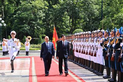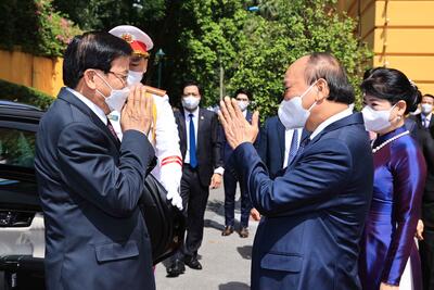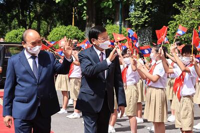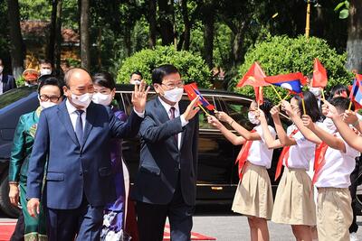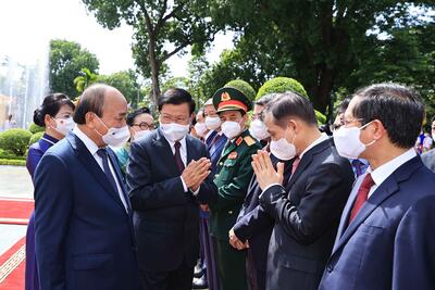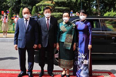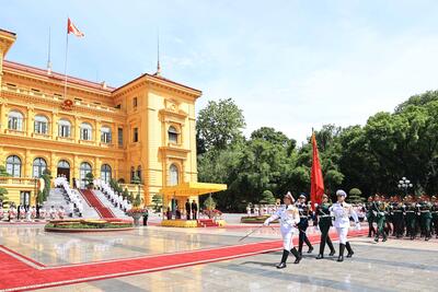 Sáng 28/6, lễ đón chính thức Tổng Bí thư, Chủ tịch nước Thongloun Sisoulith cùng Đoàn đại biểu cấp cao Đảng, Nhà nước Lào được tổ chức trọng thể tại Phủ Chủ tịch theo nghi thức cao nhất dành cho nguyên thủ quốc gia.