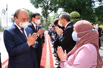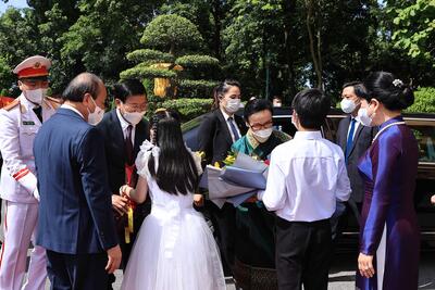 Chủ tịch nước Nguyễn Xuân Phúc và Phu nhân chủ trì lễ đón. Sau đây là một số hình ảnh của buổi lễ: