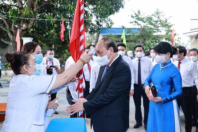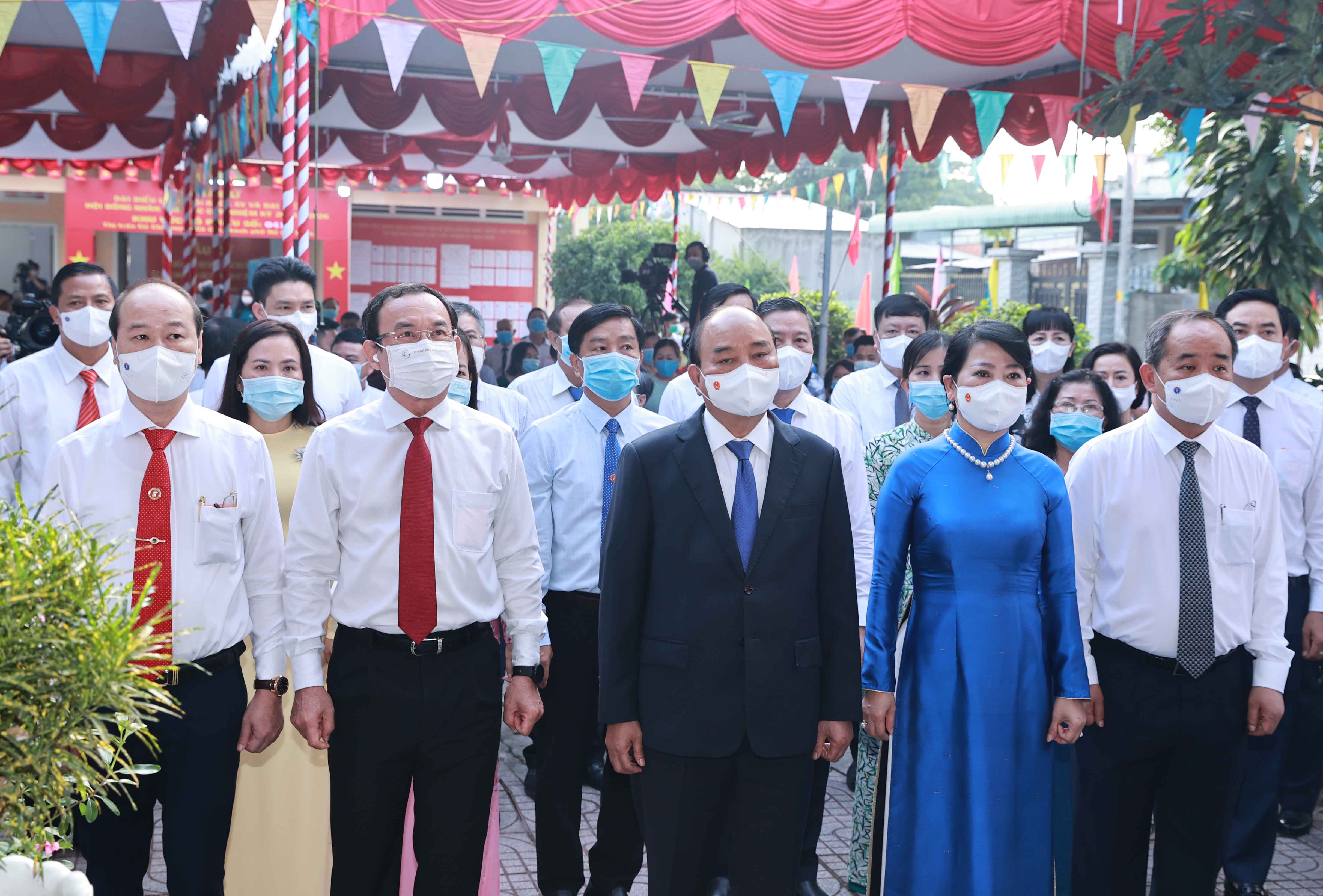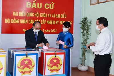 Trong không khí hân hoan của Ngày hội non sông-toàn dân đi bầu cử, đúng 7 giờ sáng 23/5, Chủ tịch nước Nguyễn Xuân Phúc cùng phu nhân và các cử tri khu vực bỏ phiếu 041, đơn vị bầu cử số 9 (thị trấn Củ Chi, huyện Củ Chi, Thành phố Hồ Chí Minh) đã bỏ những lá phiếu bầu đại biểu Quốc hội khóa XV và đại biểu Hội đồng Nhân dân nhiệm kỳ 2021-2026.