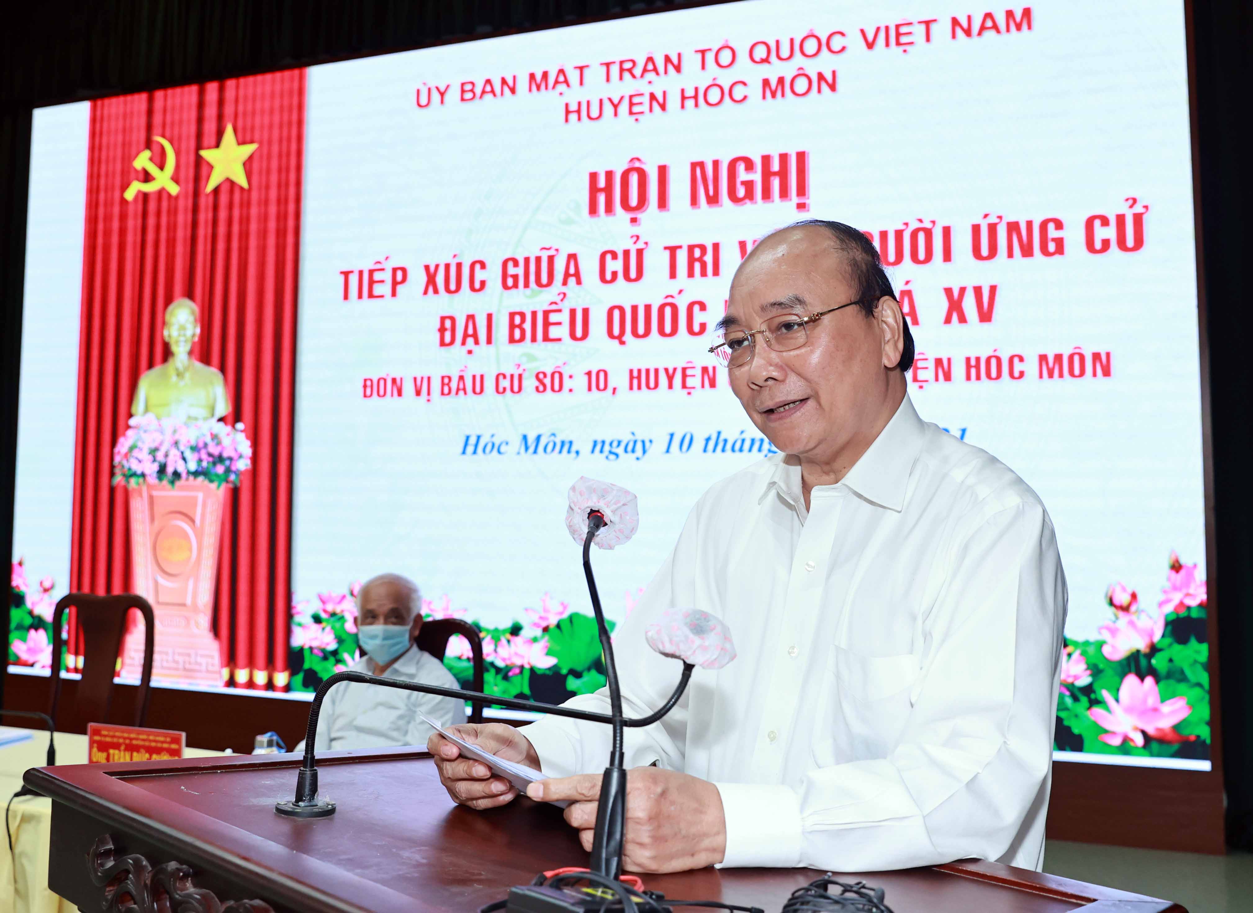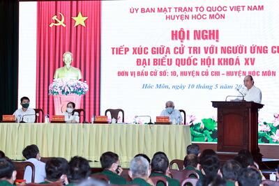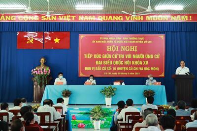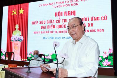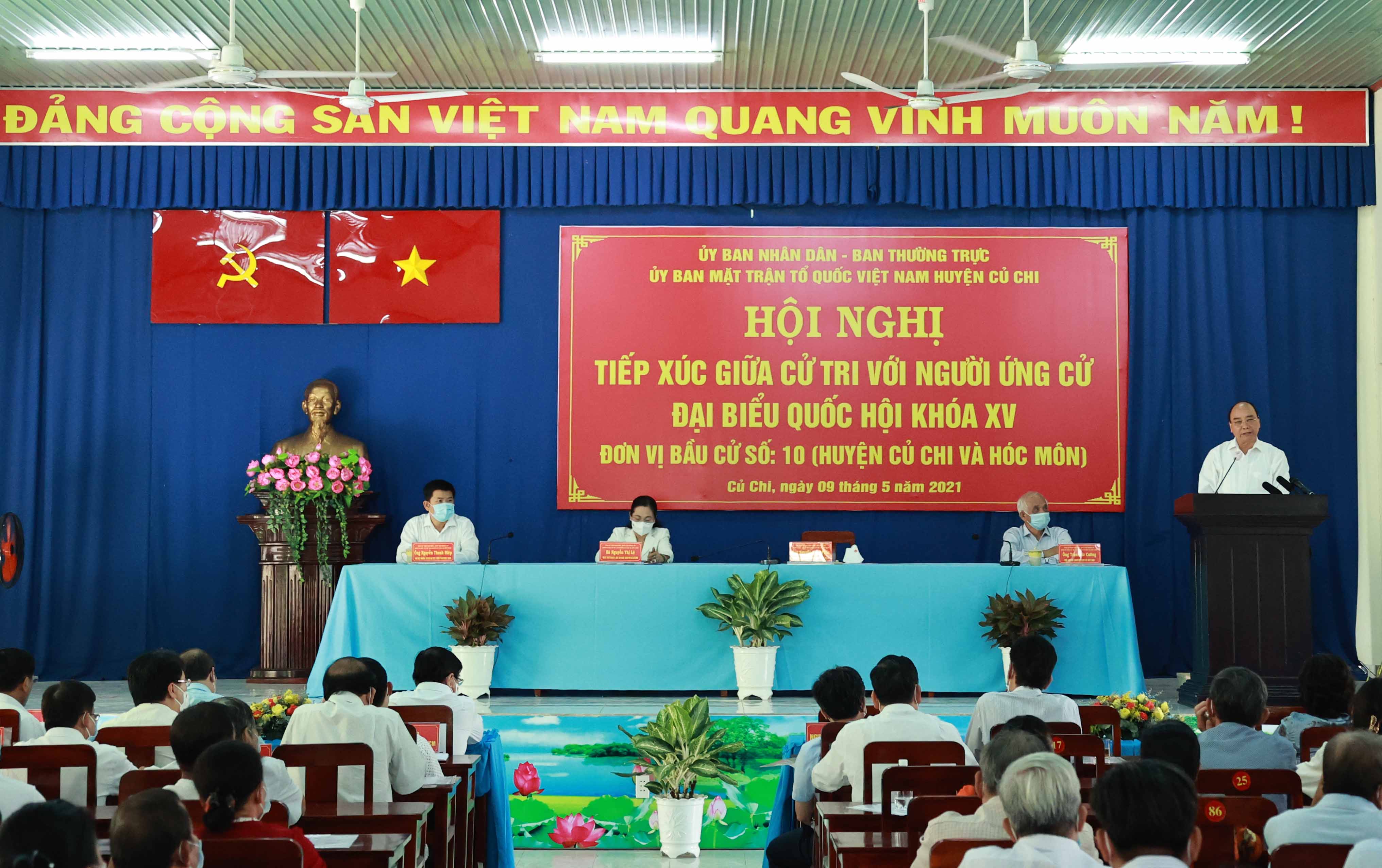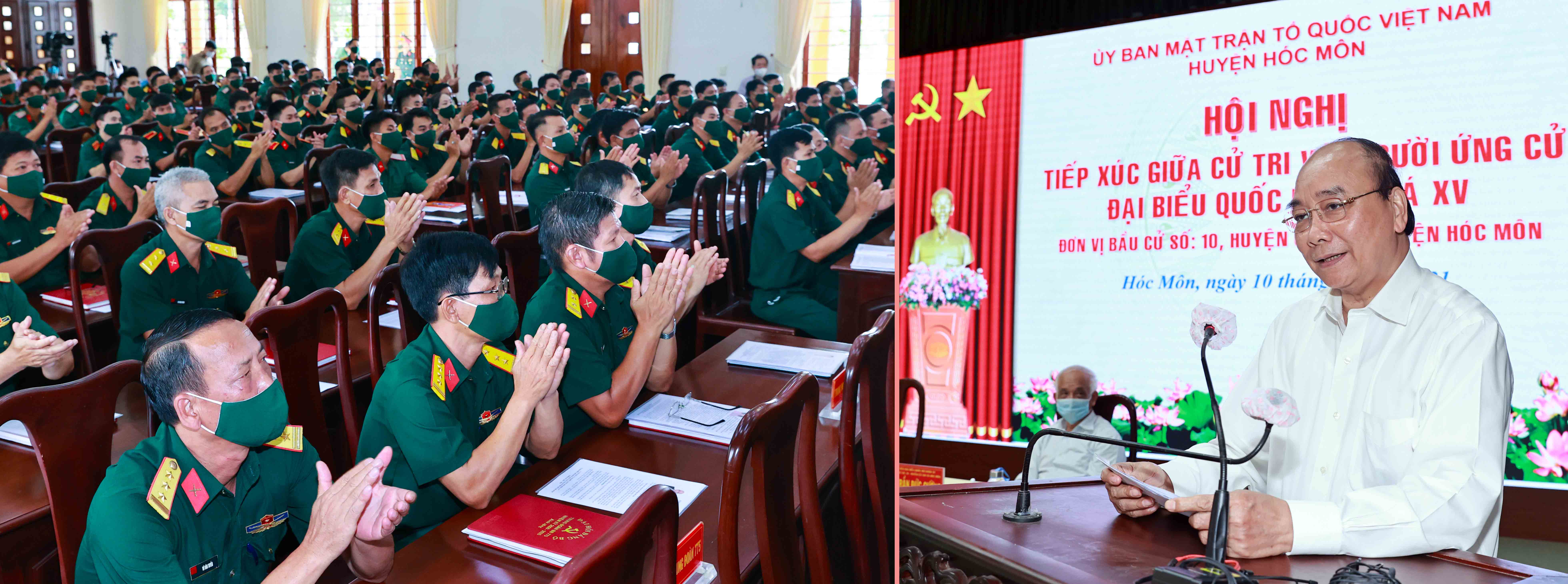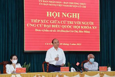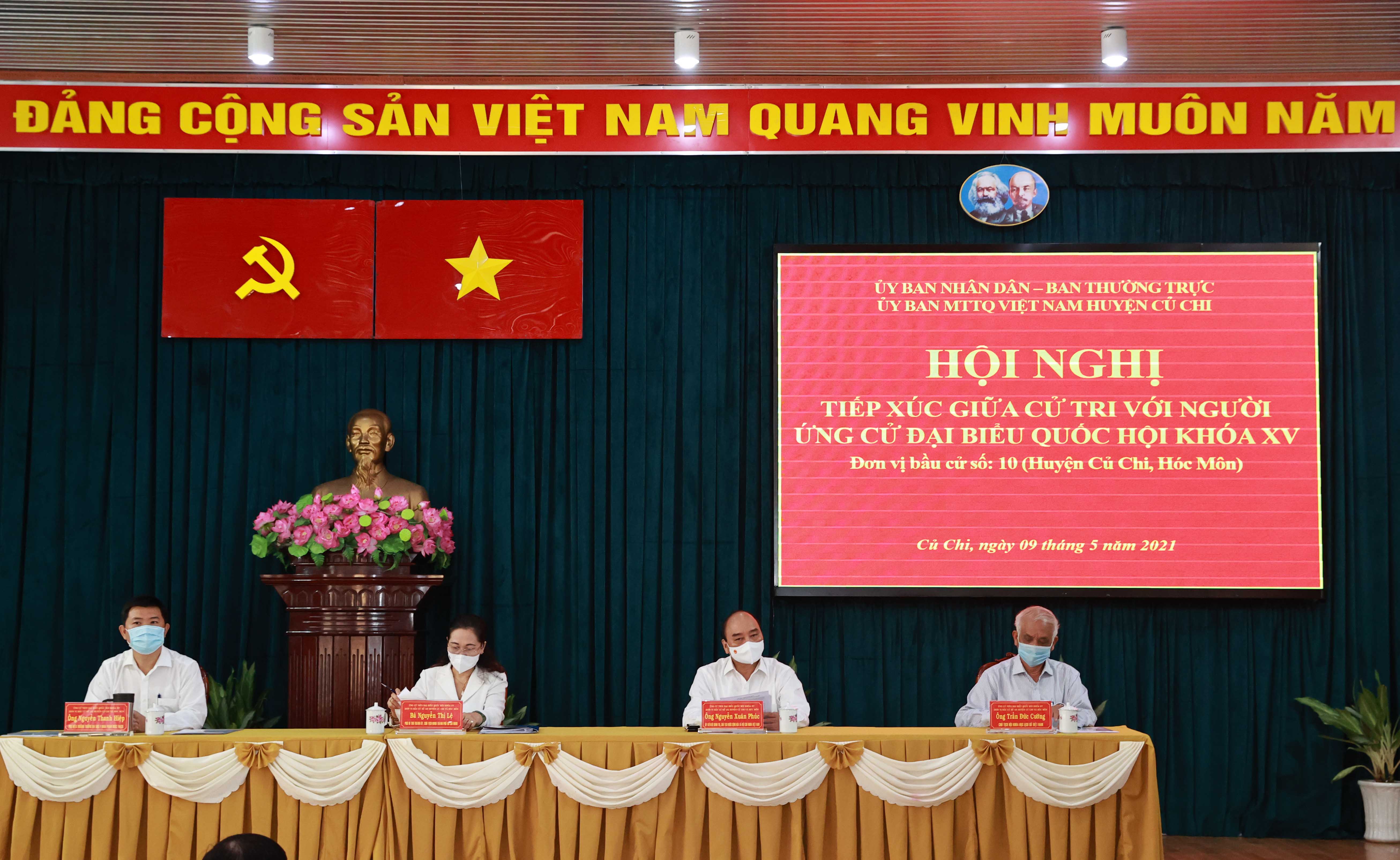 Trong 2 ngày 9-10/5, Chủ tịch nước Nguyễn Xuân Phúc cùng các ứng cử viên đại biểu Quốc hội khóa XV thuộc Đơn vị bầu cử số 10 tại các huyện Củ Chi, Hóc Môn (Thành phố Hồ Chí Minh) tham dự Hội nghị tiếp xúc giữa cử tri với người ứng cử đại biểu Quốc hội để vận động bầu cử. Sau đây là một số hình ảnh hoạt động của Chủ tịch nước tại Thành phố Hồ Chí Minh: