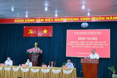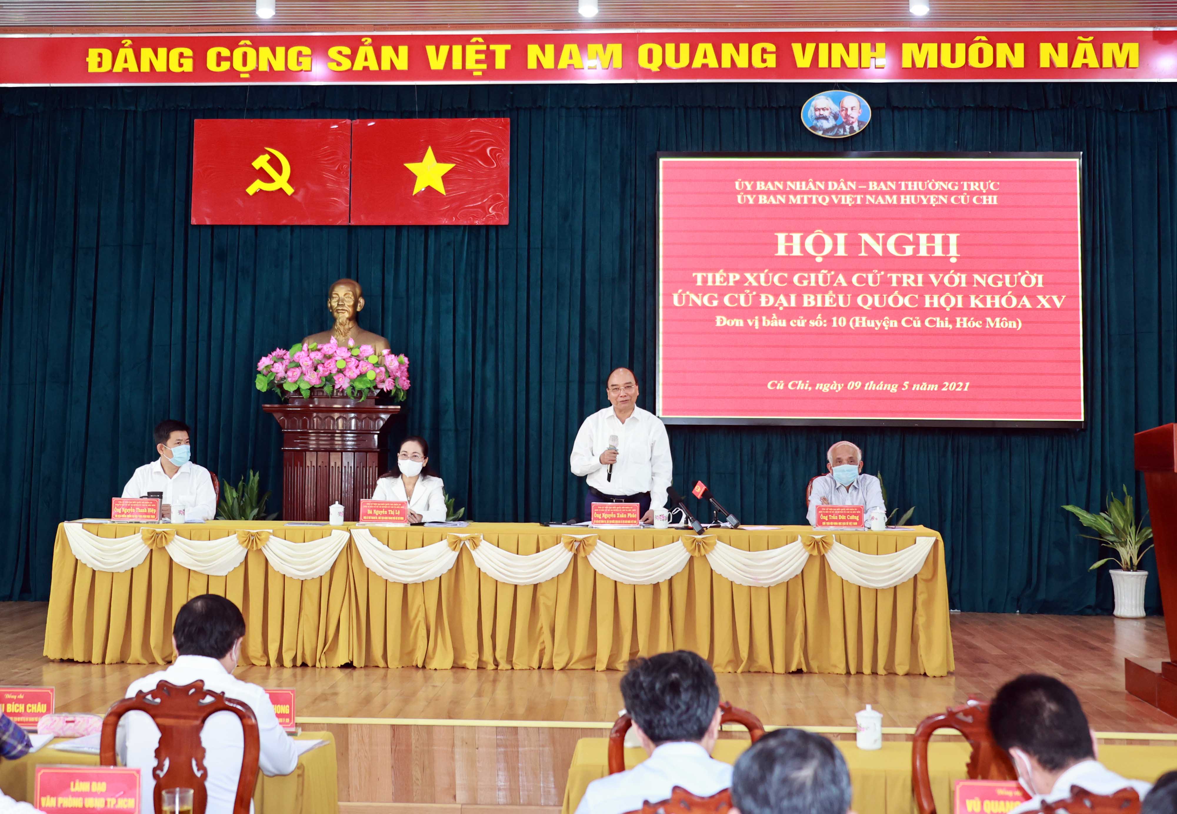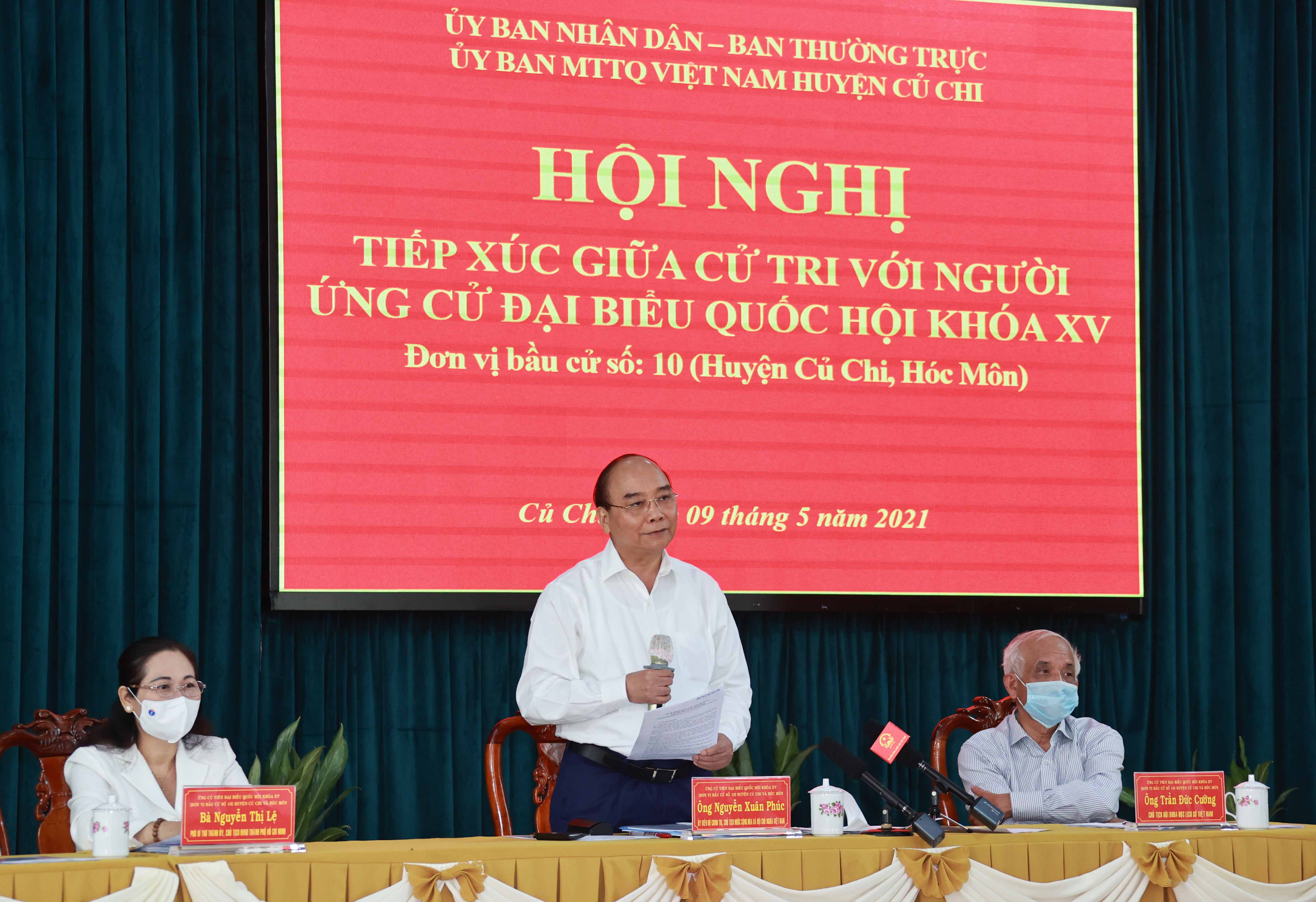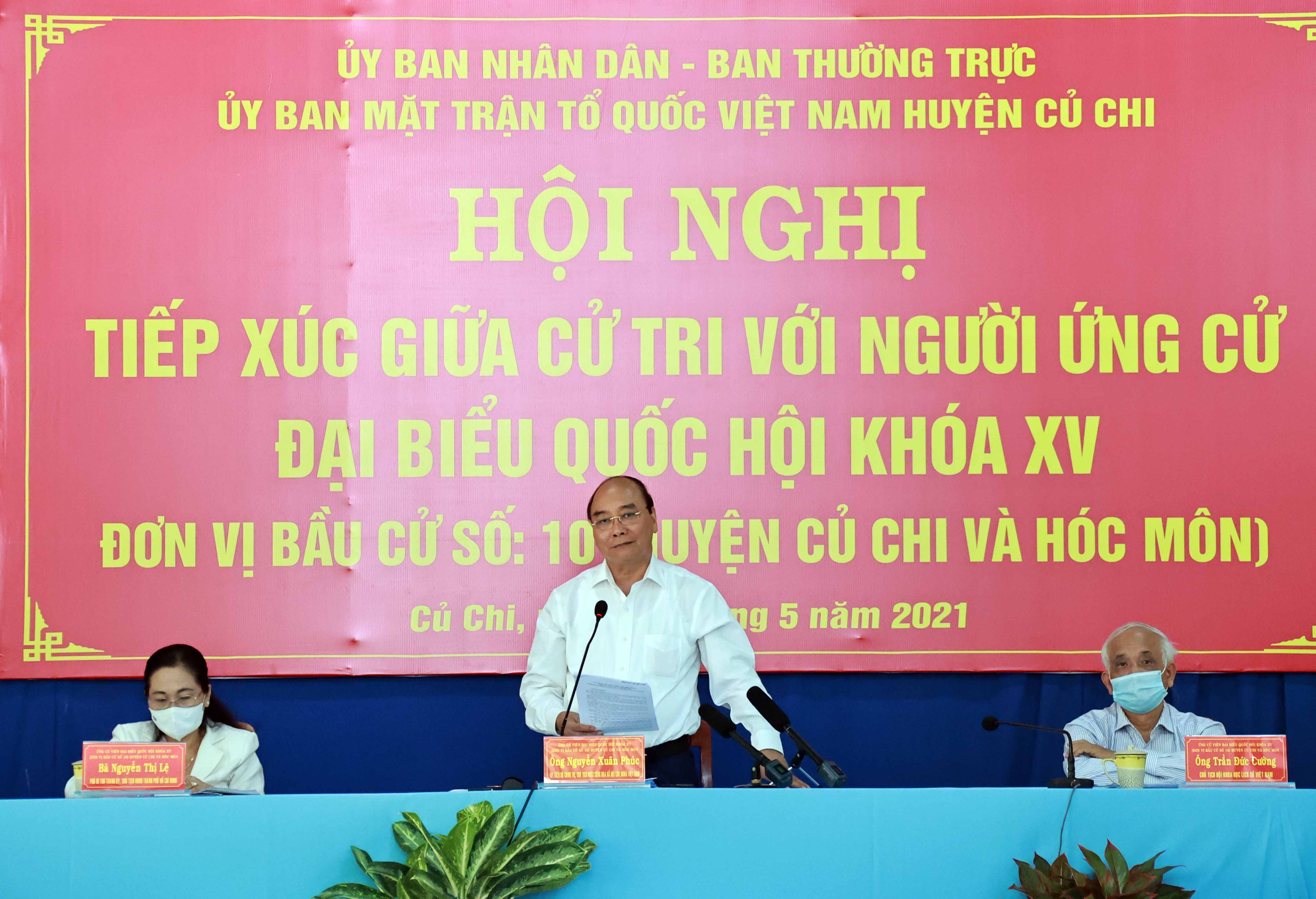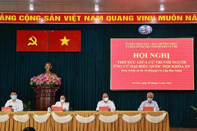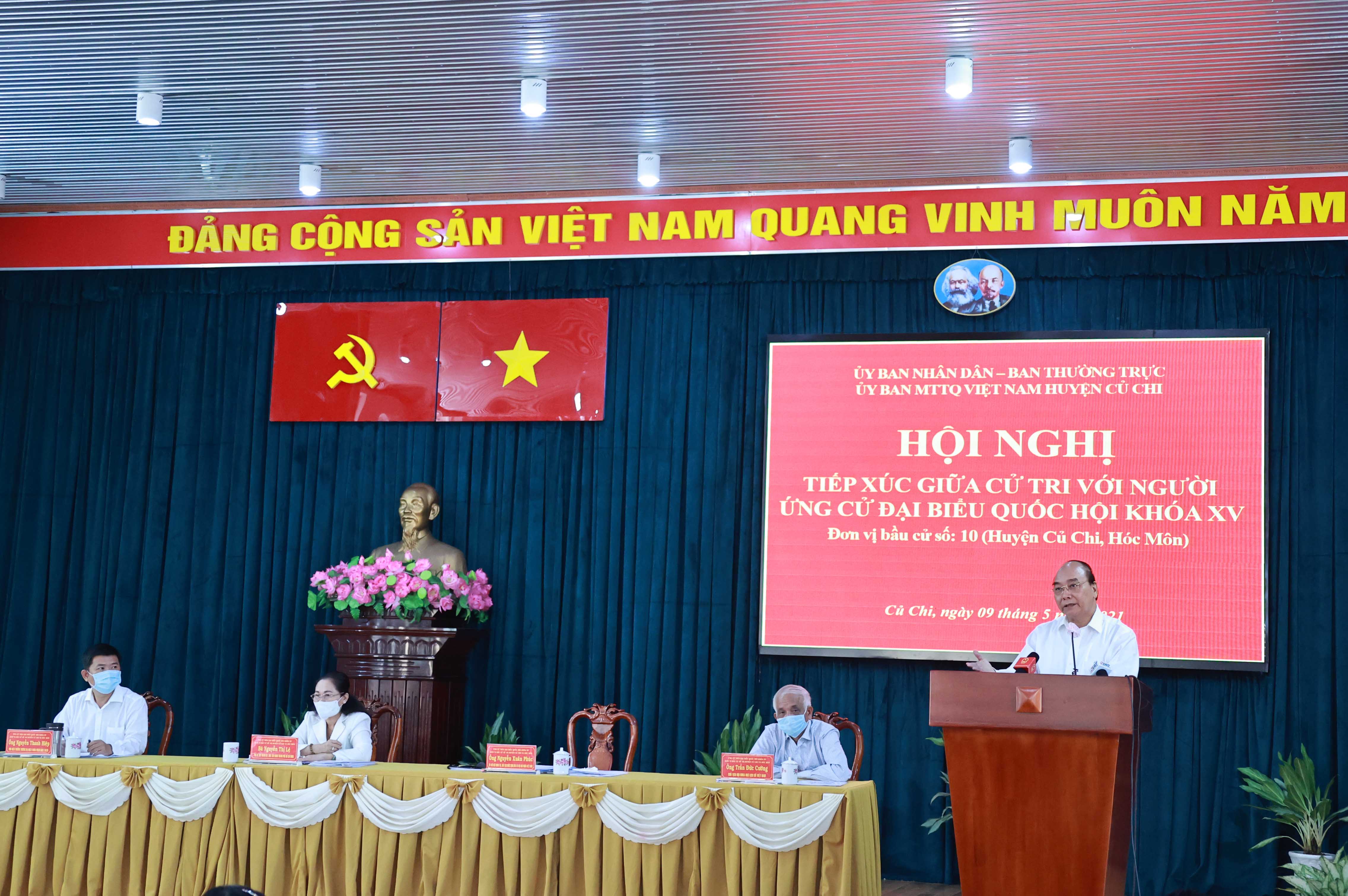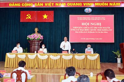 Trong 2 ngày 9-10/5, Chủ tịch nước Nguyễn Xuân Phúc cùng các ứng cử viên đại biểu Quốc hội khóa XV thuộc Đơn vị bầu cử số 10 tại các huyện Củ Chi, Hóc Môn (Thành phố Hồ Chí Minh) tham dự Hội nghị tiếp xúc giữa cử tri với người ứng cử đại biểu Quốc hội để vận động bầu cử. Sau đây là một số hình ảnh hoạt động của Chủ tịch nước tại Thành phố Hồ Chí Minh: