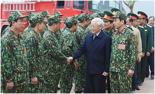 Tổng Bí thư Nguyễn Phú Trọng gặp gỡ, động viên bộ đội.