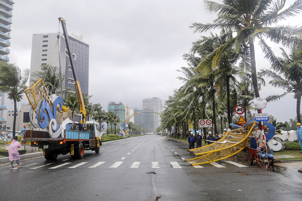Trên một số tuyến phố do gió lớn đã làm đổ cổng chào, cây cối ảnh hưởng tới việc đi lại của người dân. Đặc biệt khi qua một số cầu trên sông Hàn và các tuyến đường ven biển như Võ Nguyên Giáp, Hoàng Sa, Trường Sa gió thổi mạnh khiến người điều khiển mô tô nhiều lúc tưởng chừng không đi nổi...