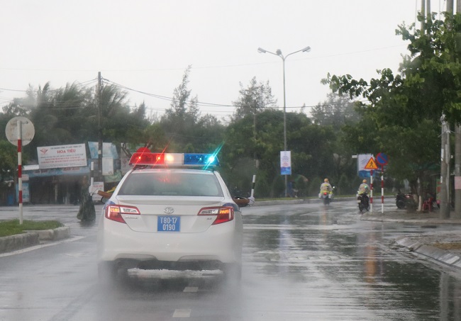 Hình ảnh các chiến sĩ CSGT "đội mưa" làm việc đã "ghi điểm" với quan khách và người dân Đà Nẵng