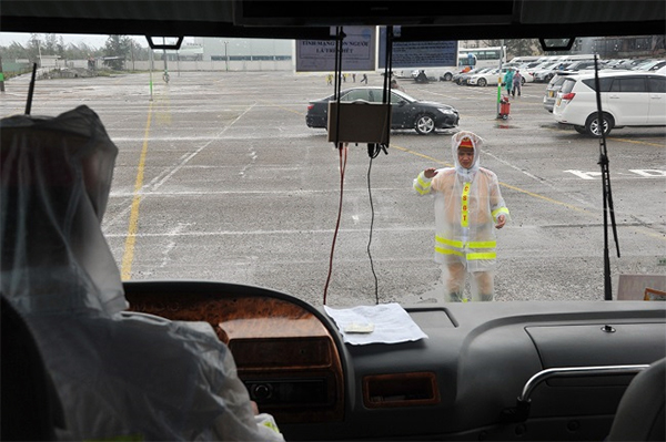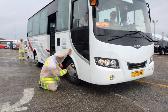 Dầm mưa để kiểm tra an toàn tuyệt đối cho từng chiếc xe phục vụ TLCC APEC