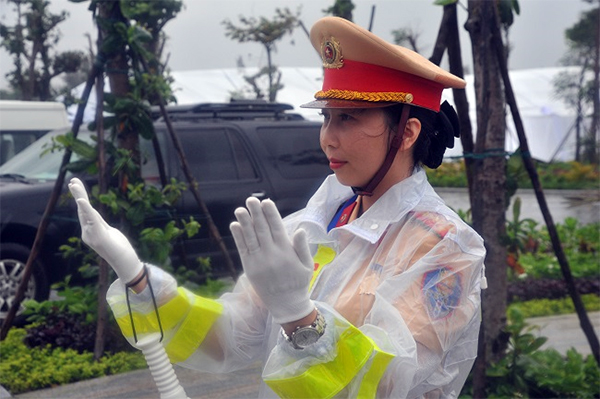 Hình ảnh lực lượng CSGT, đặc biệt là nữ CSGT dầm mình trong cơn bão số 12 phục vụ các hoạt động của Tuần lễ cấp cao (TLCC) APEC đã “ghi điểm” trong trái tim của bạn bè quốc tế và đại biểu tham dự Diễn đàn.