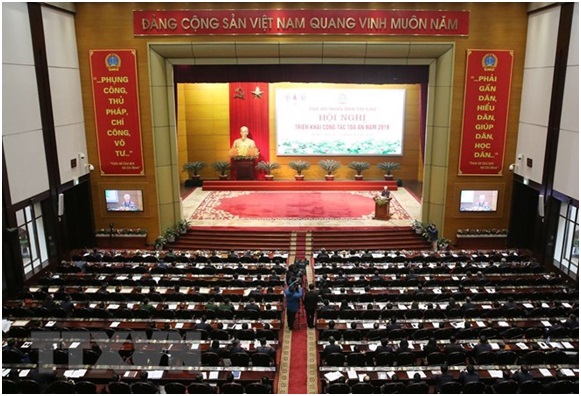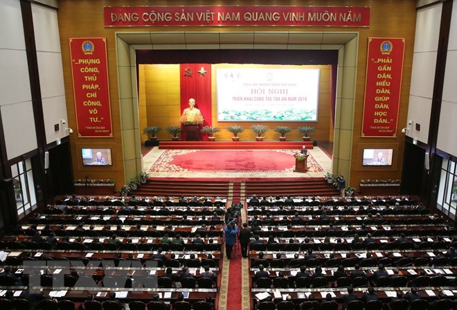 Ngày 14/1, tại Hà Nội, Tòa án nhân dân tối cao đã tổ chức Hội nghị đánh giá tình hình thực hiện các nhiệm vụ công tác của các Tòa án năm 2018 và từ đầu nhiệm kỳ 2016-2020 đến nay; đồng thời xác định mục tiêu, nhiệm vụ trọng tâm công tác trong thời gian tới. Tổng Bí thư, Chủ tịch nước Nguyễn Phú Trọng, Trưởng ban Chỉ đạo cải cách tư pháp Trung ương đến dự và phát biểu chỉ đạo tại hội nghị.
