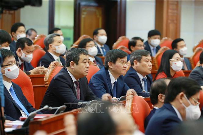 Tổng Bí thư Nguyễn Phú Trọng, Chủ tịch nước Nguyễn Xuân Phúc,Thủ tướng Chính phủ Phạm Minh Chính, Chủ tịch Quốc hội Vương Đình Huệ cùng các đồng chí lãnh đạo Đảng, Nhà nước dự bế mạc Hội nghị.