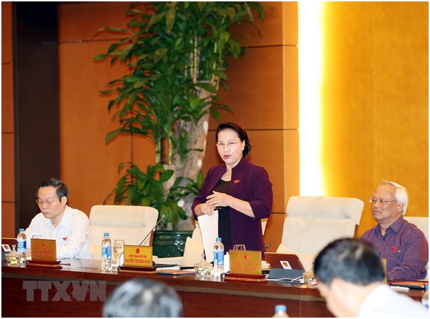 Chủ tịch Quốc hội Nguyễn Thị Kim Ngân phát biểu tại Ủy ban Thường vụ Quốc hội. (Ảnh: Trọng Đức/TTXVN)