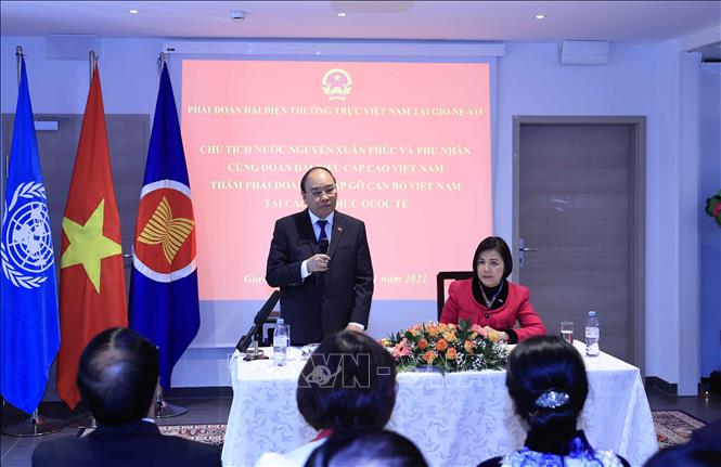 Chủ tịch nước Nguyễn Xuân Phúc gặp gỡ chuyên gia Việt Nam làm việc tại các tổ chức quốc tế; cán bộ, nhân viên Phái đoàn đại diện thường trực Việt Nam tại Geneva.