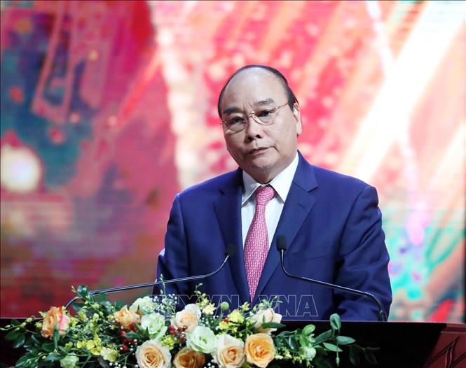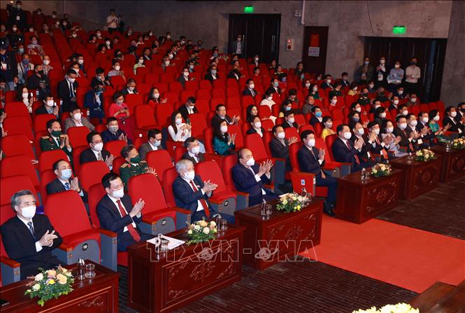 Chủ tịch nước Nguyễn Xuân Phúc và các đại biểu dự Lễ trao Giải báo chí Quốc gia lần thứ XV - năm 2020. Ảnh: Thống Nhất/TTXVN