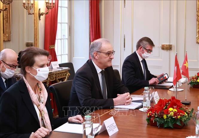 Tổng thống Guy Parmelin nhiệt liệt chào mừng Chủ tịch nước Nguyễn Xuân Phúc sang thăm Thụy Sĩ đúng vào dịp hai nước kỷ niệm 50 năm thiết lập quan hệ ngoại giao, tin tưởng chuyến thăm sẽ là dấu mốc quan trọng, góp phần thúc đẩy mạnh mẽ quan hệ hợp tác Việt Nam - Thụy Sĩ lên tầm cao mới.