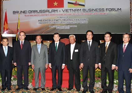 Tới dự và phát biểu ý kiến tại Diễn đàn Doanh nghiệp Việt Nam - Bru-nây, Chủ tịch nước Trương Tấn Sang khẳng định, Việt Nam luôn tạo điều kiện cho các nhà đầu tư nước ngoài, trong đó có Bru-nây, kinh doanh tại Việt Nam. Chủ tịch nước đánh giá cao việc các nhà đầu tư