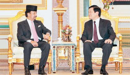 Chủ tịch nước Trương Tấn Sang hội kiến và hội đàm với Quốc vương Bru-nây Ða-rút-xa-lam