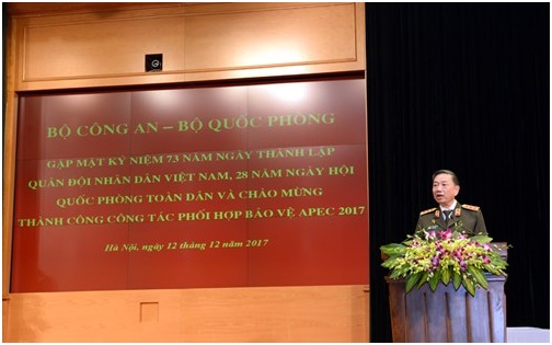 Tối 12-12, tại Hà Nội, Bộ Công an tổ chức trọng thể buổi gặp mặt kỷ niệm 73 năm Ngày thành lập Quân đội nhân dân (QĐND) Việt Nam, 28 năm Ngày hội Quốc phòng toàn dân và chào mừng thành công công tác phối hợp bảo vệ APEC 2017.