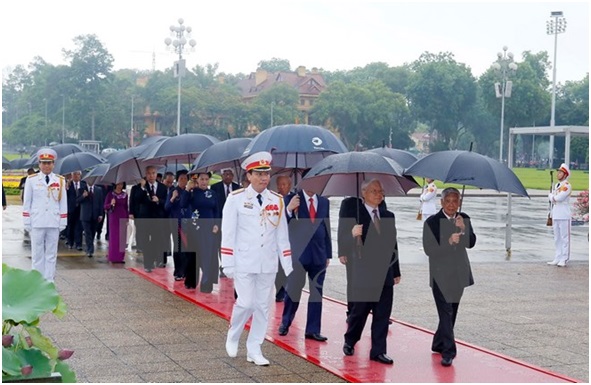 Nhân dịp kỷ niệm 127 năm Ngày sinh Chủ tịch Hồ Chí Minh (19/5/1890-19/5/2017), sáng 18/5, Đoàn đại biểu Ban Chấp hành Trung ương Đảng, Nhà nước, Quốc hội, Chính phủ, Ủy ban Trung ương Mặt trận Tổ quốc Việt Nam do Tổng Bí thư Nguyễn Phú Trọng dẫn đầu đã vào Lăng viếng Chủ tịch Hồ Chí Minh và đặt hoa, dâng hương tưởng niệm các Anh hùng liệt sỹ tại Đài tưởng niệm các Anh hùng liệt sỹ (đường Bắc Sơn, Ba Đình, Hà Nội).