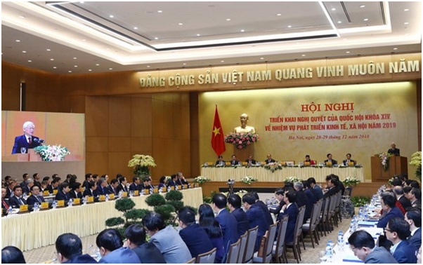 Ngày 28/12, Hội nghị toàn quốc Chính phủ với các địa phương được tổ chức nhằm triển khai nghị quyết của Quốc hội khóa XIV về nhiệm vụ phát triển kinh tế-xã hội năm 2019. Tại hội nghị, lãnh đạo các bộ, ngành, tỉnh, thành phố đã thảo luận, đưa ra các kiến nghị, giải pháp nhằm khơi thông và huy động mọi nguồn lực cho phát triển; khắc phục nhanh những chậm trễ, trì trệ, kém hiệu quả trong xây dựng cơ chế, chính sách và trong tổ chức thực hiện các mục tiêu kinh tế-xã hội.