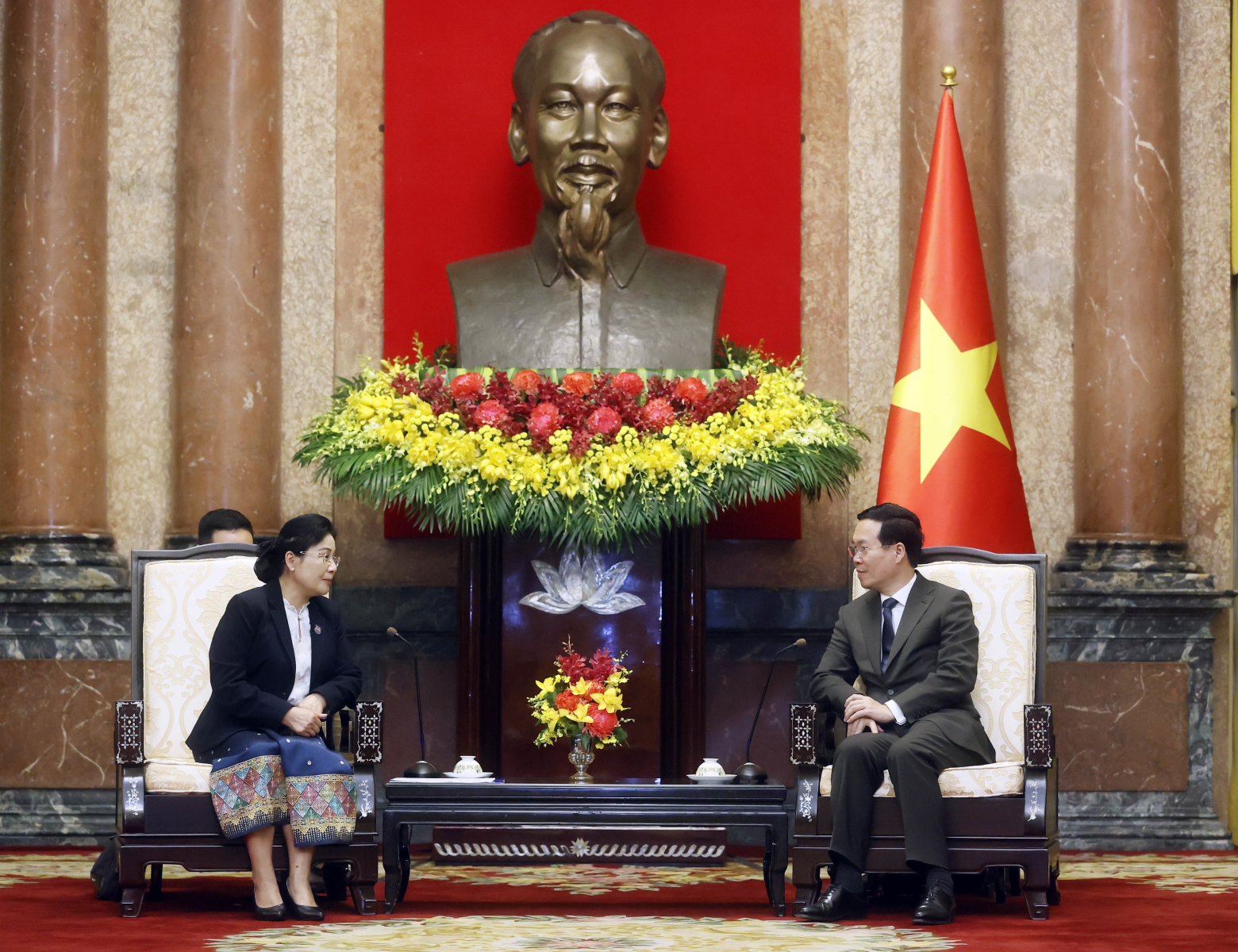 Chủ tịch nước Võ Văn Thưởng tiếp Chánh án Tòa án nhân dân tối cao Lào. Ảnh: VPCTN