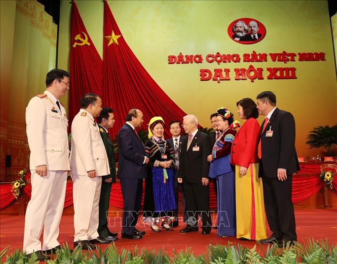 Tổng Bí thư, Chủ tịch nước Nguyễn Phú Trọng và Thủ tướng Chính phủ Nguyễn Xuân Phúc với các đại biểu. Ảnh: TTXVN