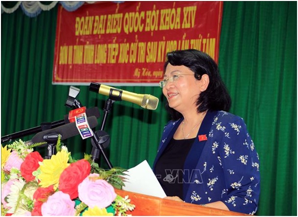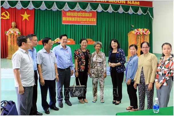 Chiều 28/11, Phó Chủ tịch nước Đặng Thị Ngọc Thịnh cùng Đoàn đại biểu Quốc hội tỉnh Vĩnh Long đã tiếp xúc cử tri các xã Mỹ Hòa, Đông Thành, Đông Bình (thị xã Bình Minh, tỉnh Vĩnh Long) sau Kỳ họp thứ 8, Quốc hội khóa XIV.
