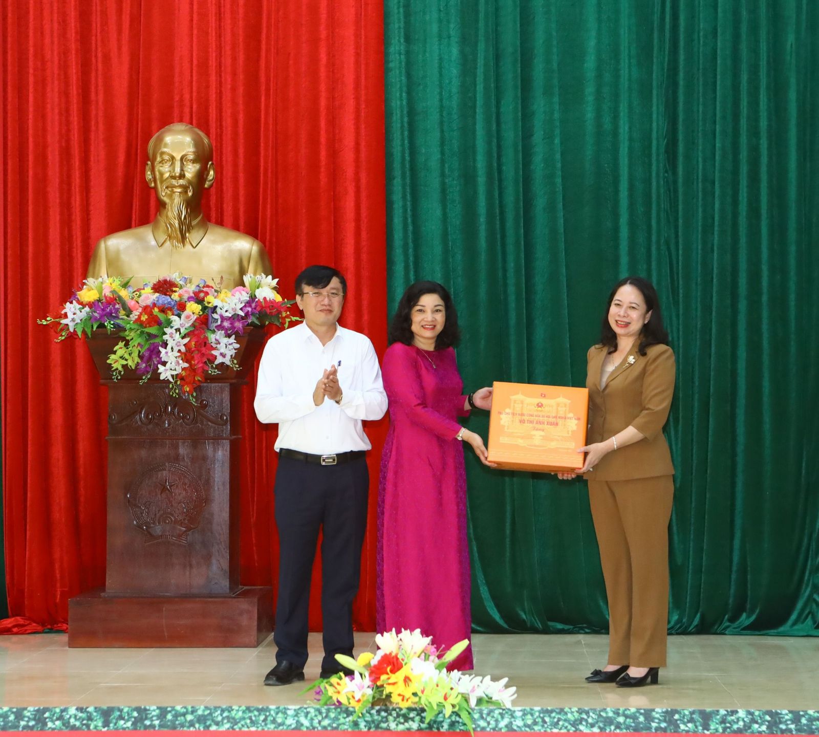 Phó Chủ tịch nước tặng quà lưu niệm huyện Nam Đàn.Ảnh: VPCTN