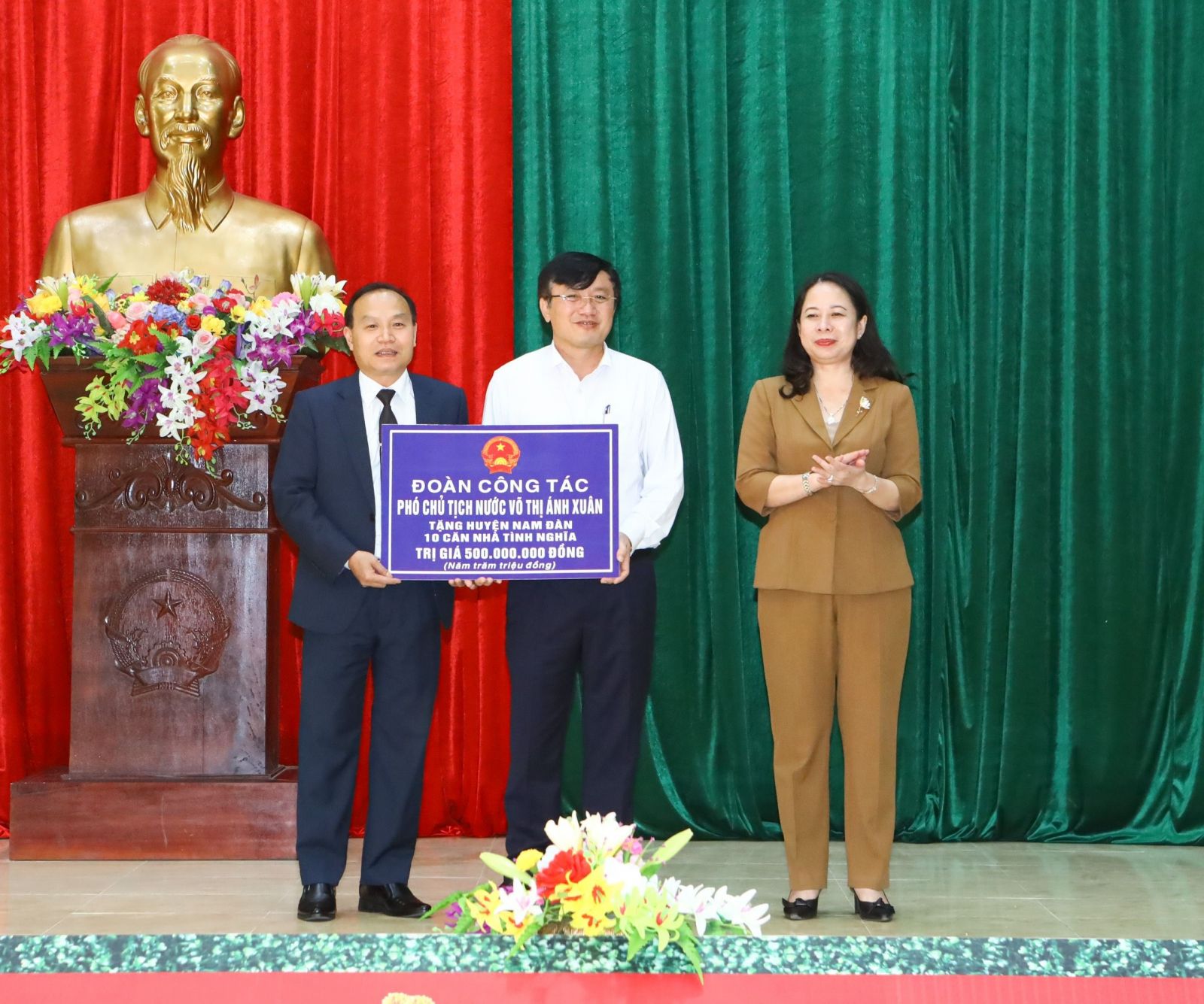 Phó Chủ tịch nước tặng quà gia đình chính sách huyện Nam Đàn. Ảnh: VPCTN