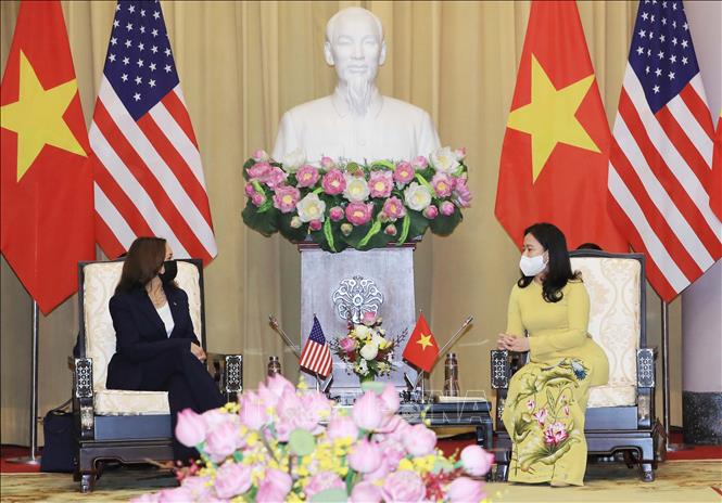 Sáng 25/8/2021, tại Phủ Chủ tịch, Phó Chủ tịch nước Võ Thị Ánh Xuân tiếp Phó Tổng thống Hợp chúng quốc Hoa Kỳ Kamala Harris sang thăm Việt Nam.