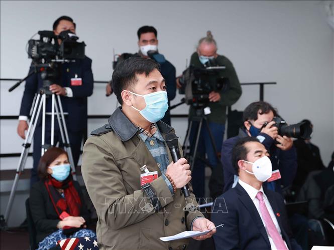 Phóng viên TTXVN đặt câu hỏi tại buổi họp báo. Ảnh: Thống Nhất/TTXVN