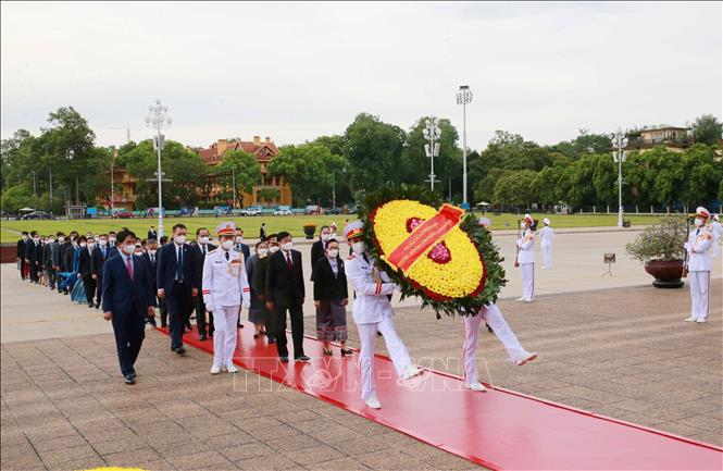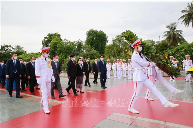 Tổng Bí thư, Chủ tịch nước Lào Thongloun Sisoulith cùng Đoàn đại biểu cấp cao Đảng, Nhà nước Lào đến đặt vòng hoa và vào Lăng viếng Chủ tịch Hồ Chí Minh.