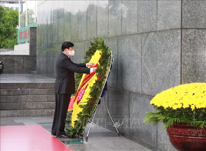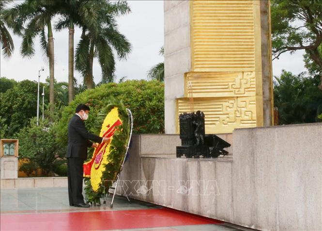 Tổng Bí thư, Chủ tịch nước Lào Thongloun Sisoulith cùng Đoàn đại biểu cấp cao Đảng, Nhà nước Lào đến đặt vòng hoa tại Đài tưởng niệm các Anh hùng liệt sỹ (đường Bắc Sơn, Hà Nội).