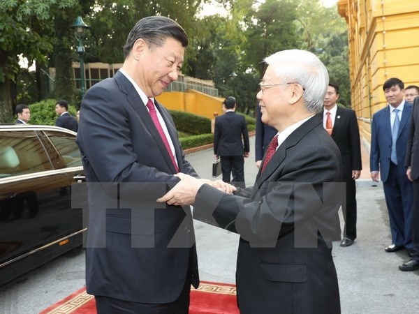 Tổng Bí thư Nguyễn Phú Trọng nhiệt liệt hoan nghênh Tổng Bí thư, Chủ tịch nước Trung Quốc Tập Cận Bình và đoàn đại biểu cấp cao của Đảng và Nhà nước Trung Quốc thăm cấp Nhà nước tới Việt Nam; chúc mừng Đại hội XIX Đảng Cộng sản Trung Quốc thành công tốt đẹp và ông Tập Cận Bình tiếp tục được Đại hội bầu làm Tổng Bí thư Ban Chấp hành Trung ương Đảng Cộng sản Trung Quốc, đánh giá cao bước phát triển sáng tạo lý luận về xây dựng chủ nghĩa xã hội đặc sắc Trung Quốc trong thời đại mới.