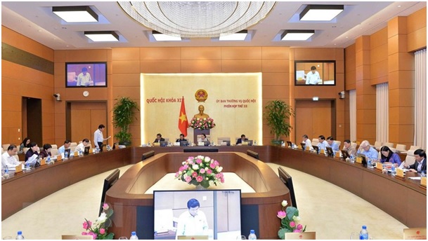 Toàn cảnh Phiên họp thứ 33 của Ủy ban Thường vụ Quốc hội khóa XIV sáng 16/4. (Ảnh: Văn Điệp/TTXVN)