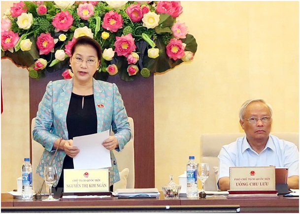 Chủ tịch Quốc hội Nguyễn Thị Kim Ngân chủ trì và phát biểu khai mạc Phiên họp thứ 35 của Ủy ban Thường vụ Quốc hội. (Ảnh: Trọng Đức/TTXVN)