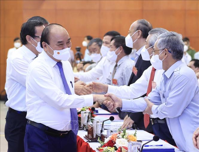 Chủ tịch nước Nguyễn Xuân Phúc và các đại biểu tham dự hội thảo.