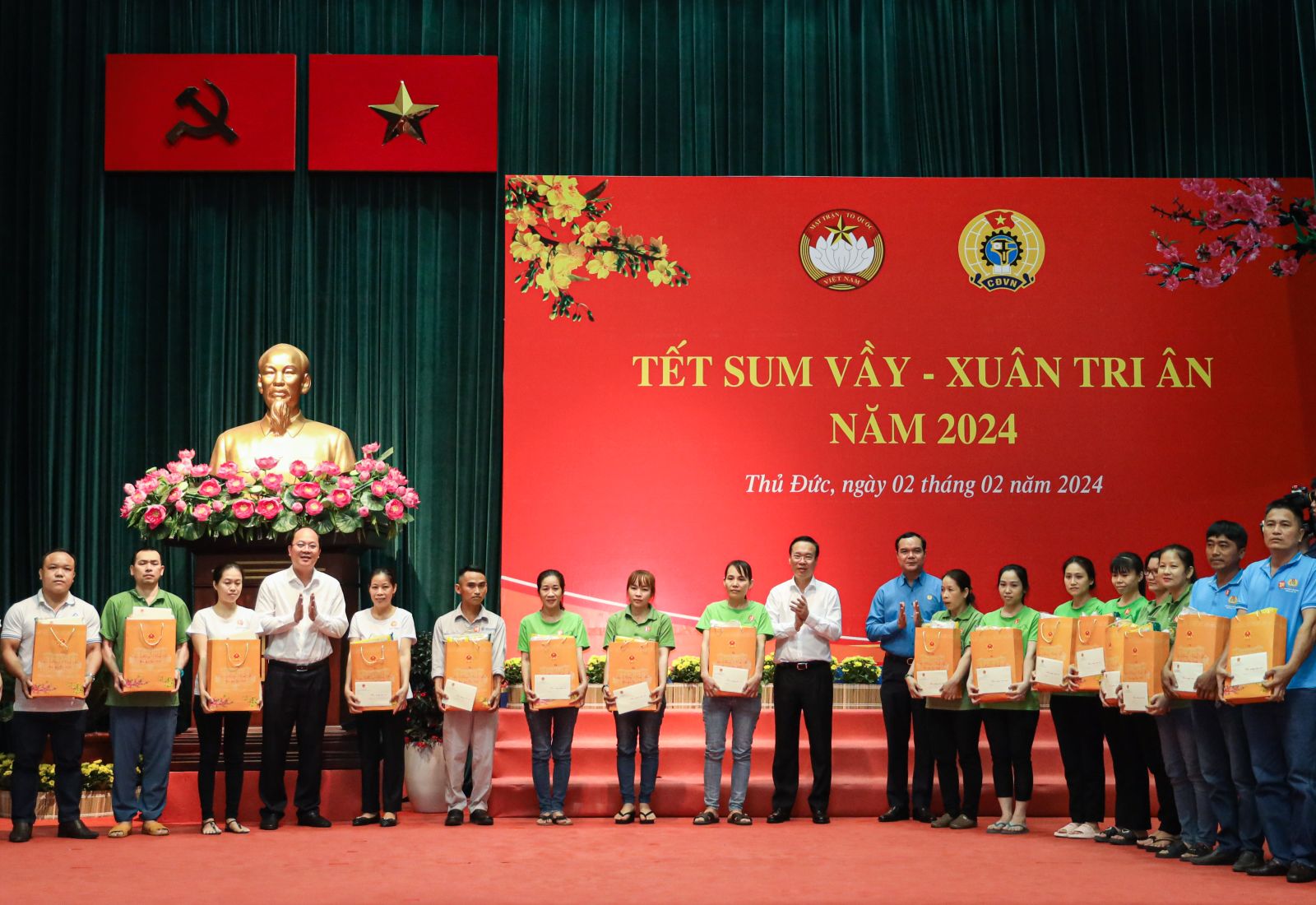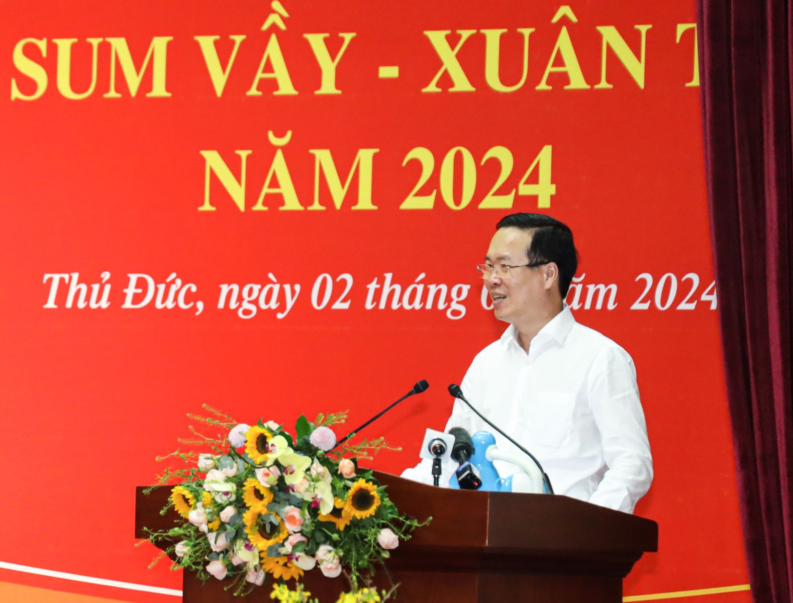 “Tết về, có nhiều người lao động không có điều kiện về quê, phải ở lại thành phố trong những ngày đáng lẽ ra được sum vầy, đây là một sự thiệt thòi. Lãnh đạo thành phố Thủ Đức, Thành phố Hồ Chí Minh cùng các cơ quan từ Trung ương đến địa phương đã chăm lo, động viên, tặng quà để ai cũng có niềm vui khi Tết về”, Chủ tịch nước bày tỏ.