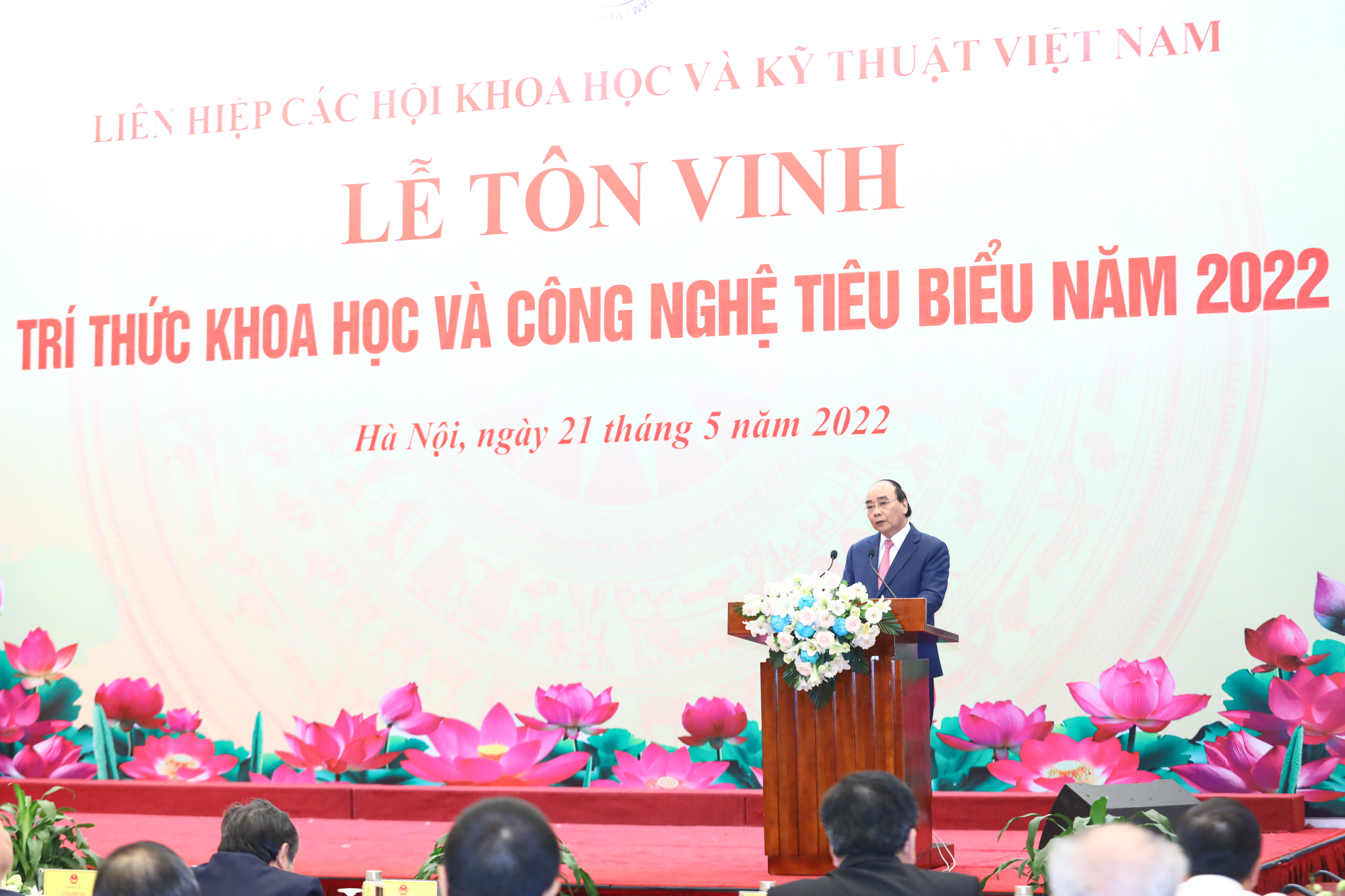 Phát biểu tại buổi lễ, Chủ tịch nước Nguyễn Xuân Phúc nêu rõ, trong suốt chiều dài lịch sử dựng nước và giữ nước của dân tộc, cha ông ta luôn quý trọng hiền tài và đội ngũ trí thức, coi hiền tài là nguyên khí quốc gia. Ngay từ khi đất nước mới giành độc lập, Chủ tịch Hồ Chí Minh đã nói “nước nhà cần phải kiến thiết, kiến thiết cần phải có nhân tài”. Trong sự nghiệp công nghiệp hóa, hiện đại hóa, Đảng ta luôn nhất quán xác định khoa học công nghệ là quốc sách. Đại hội XIII của Đảng một lần nữa nhấn mạnh yêu cầu phát triển khoa học công nghệ và đổi mới sáng tạo là một đột phá chiến lược của đất nước, đặc biệt trong bối cảnh cuộc cách mạng công nghệ số đang diễn ra mạnh mẽ trên toàn cầu, đội ngũ trí thức khoa học công nghệ Việt Nam chính là hạt nhân của tiến trình này.