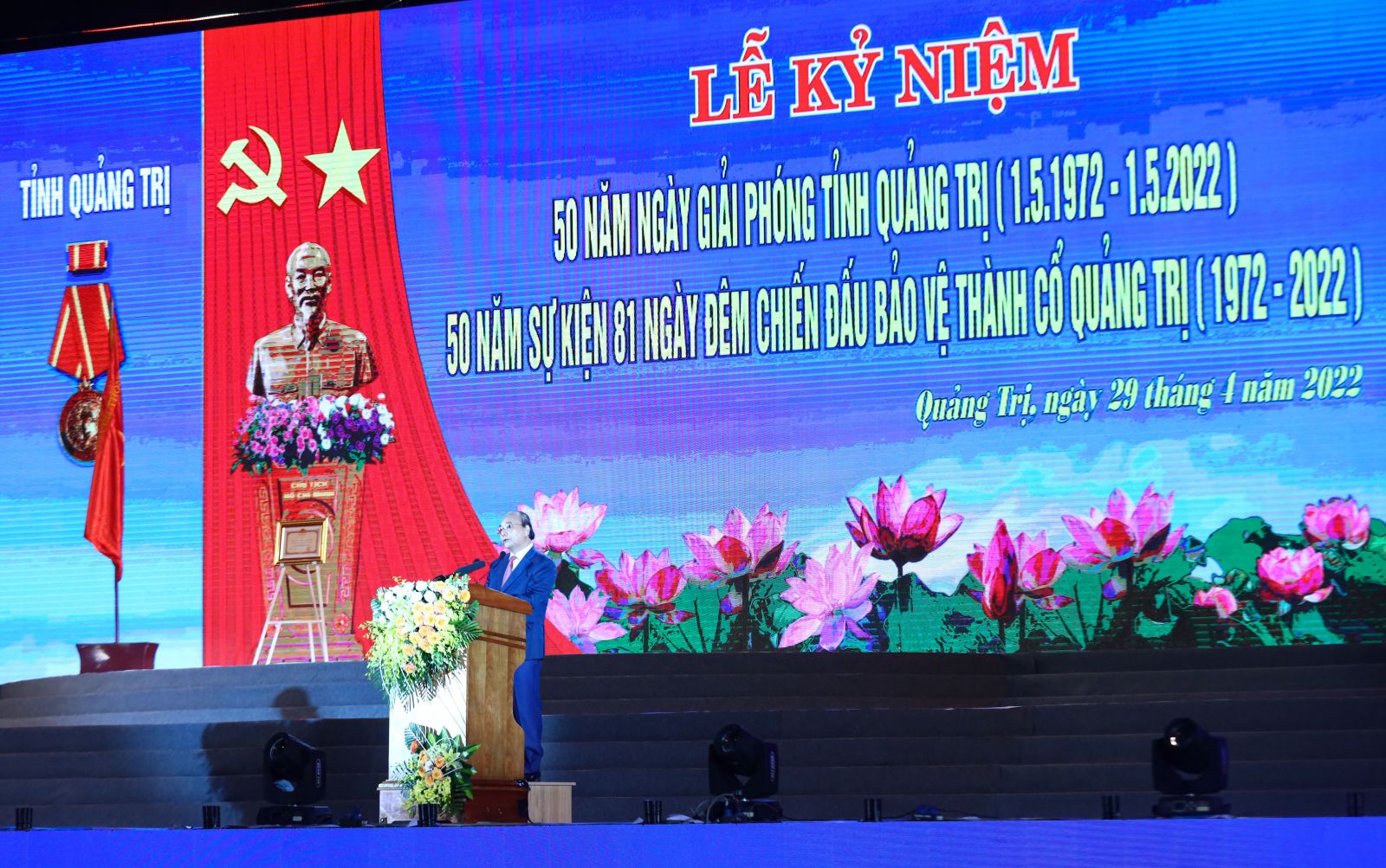Trong khí thế hào hùng của những ngày tháng Tư lịch sử kỷ niệm 47 năm ngày giải phóng hoàn toàn miền Nam, thống nhất đất nước, tối 29/4, Chủ tịch nước Nguyễn Xuân Phúc đã dự Lễ kỷ niệm 50 năm Ngày giải phóng tỉnh nhà (1/5/1972 - 1/5/2022), 50 năm sự kiện 81 ngày đêm chiến đấu bảo vệ Thành Cổ Quảng Trị.