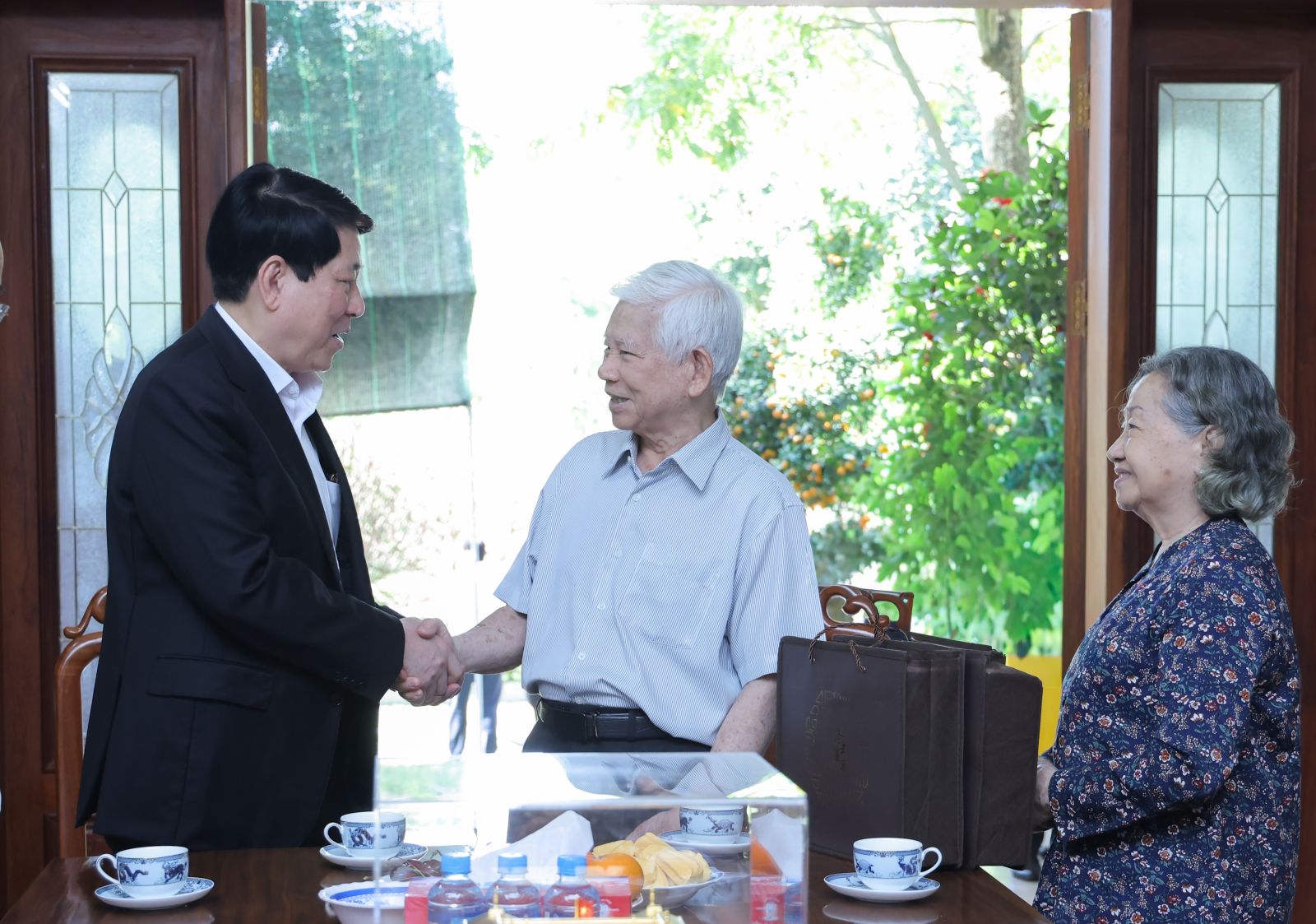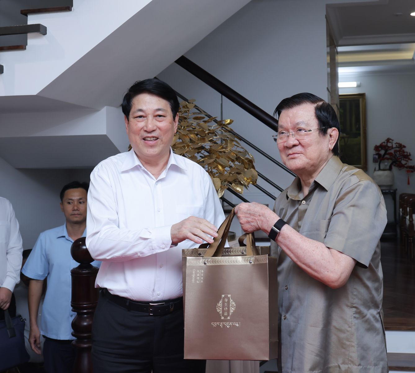 Chủ tịch nước Lương Cường thăm hỏi, chúc Tết nguyên Chủ tịch nước Nguyễn Minh Triết. Ảnh: VPCTN
