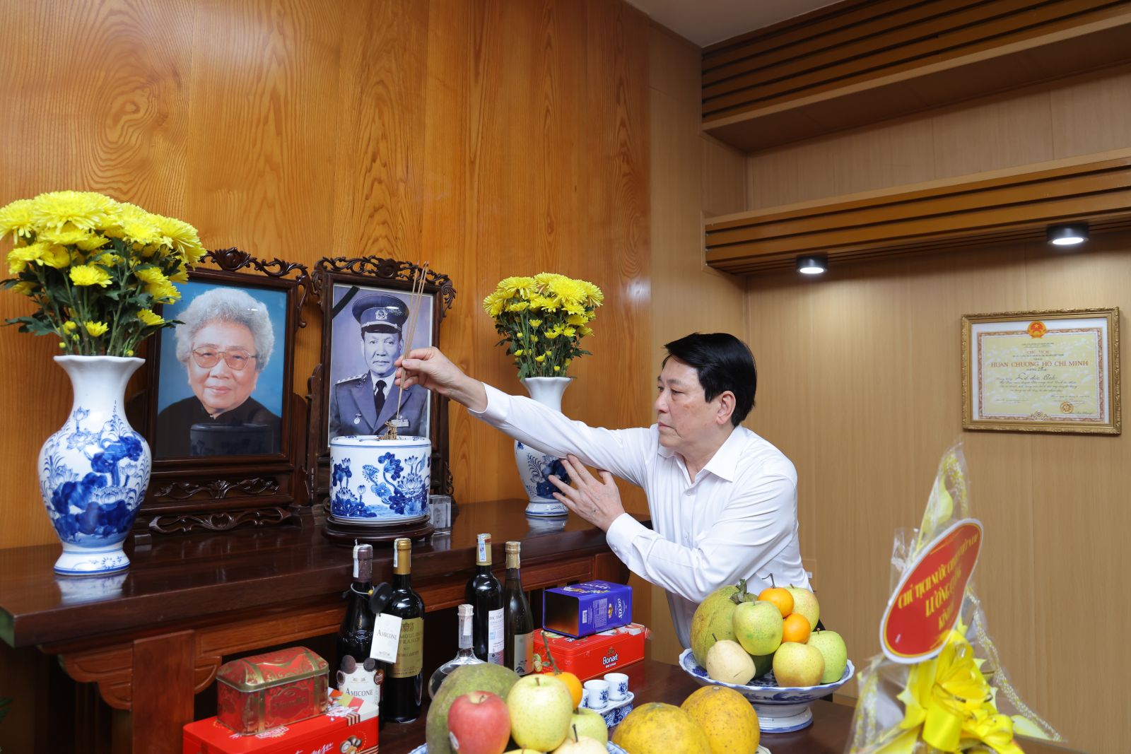 Chủ tịch nước Lương Cường dâng hương tưởng nhớ Tổng Bí thư Nguyễn Văn Linh. Ảnh: VPCTN