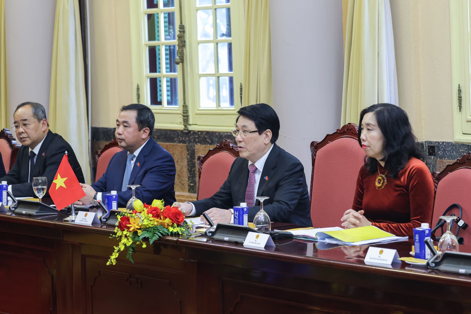 Chủ tịch nước Lương Cường phát biểu tại cuộc hội đàm. Ảnh: VPCTN
