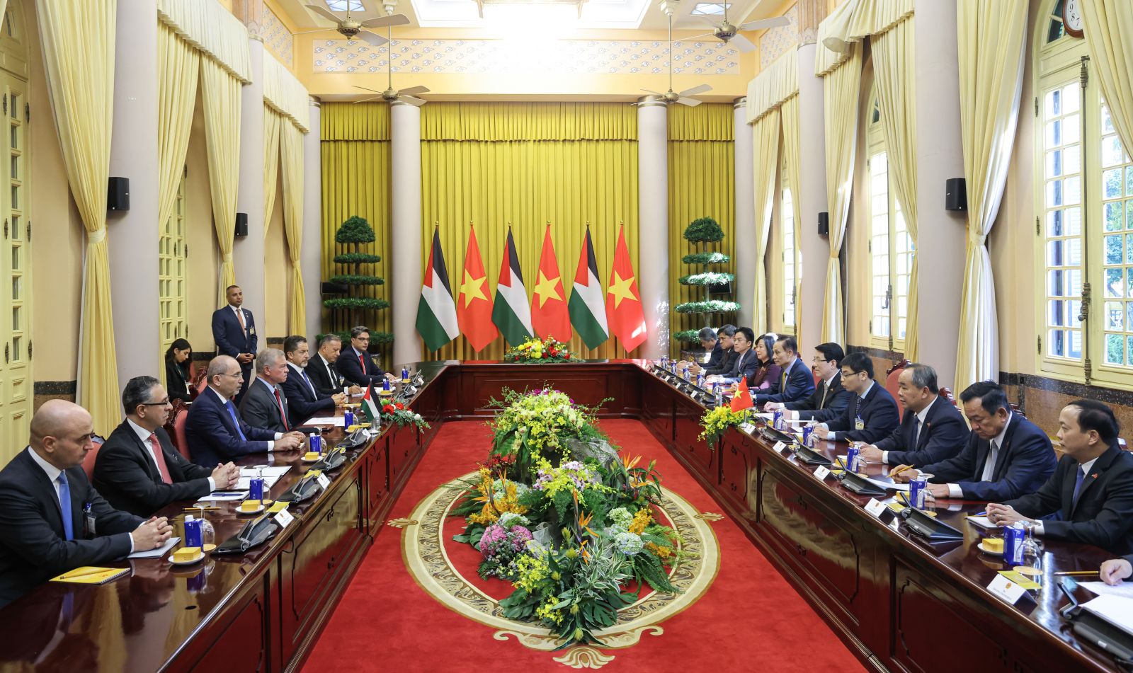 Chiều 12/11, ngay sau lễ đón chính thức được tổ chức trọng thể tại Phủ Chủ tịch, Chủ tịch nước Lương Cường đã hội đàm với Quốc vương Jordan Abdullah II bin Al-Hussein