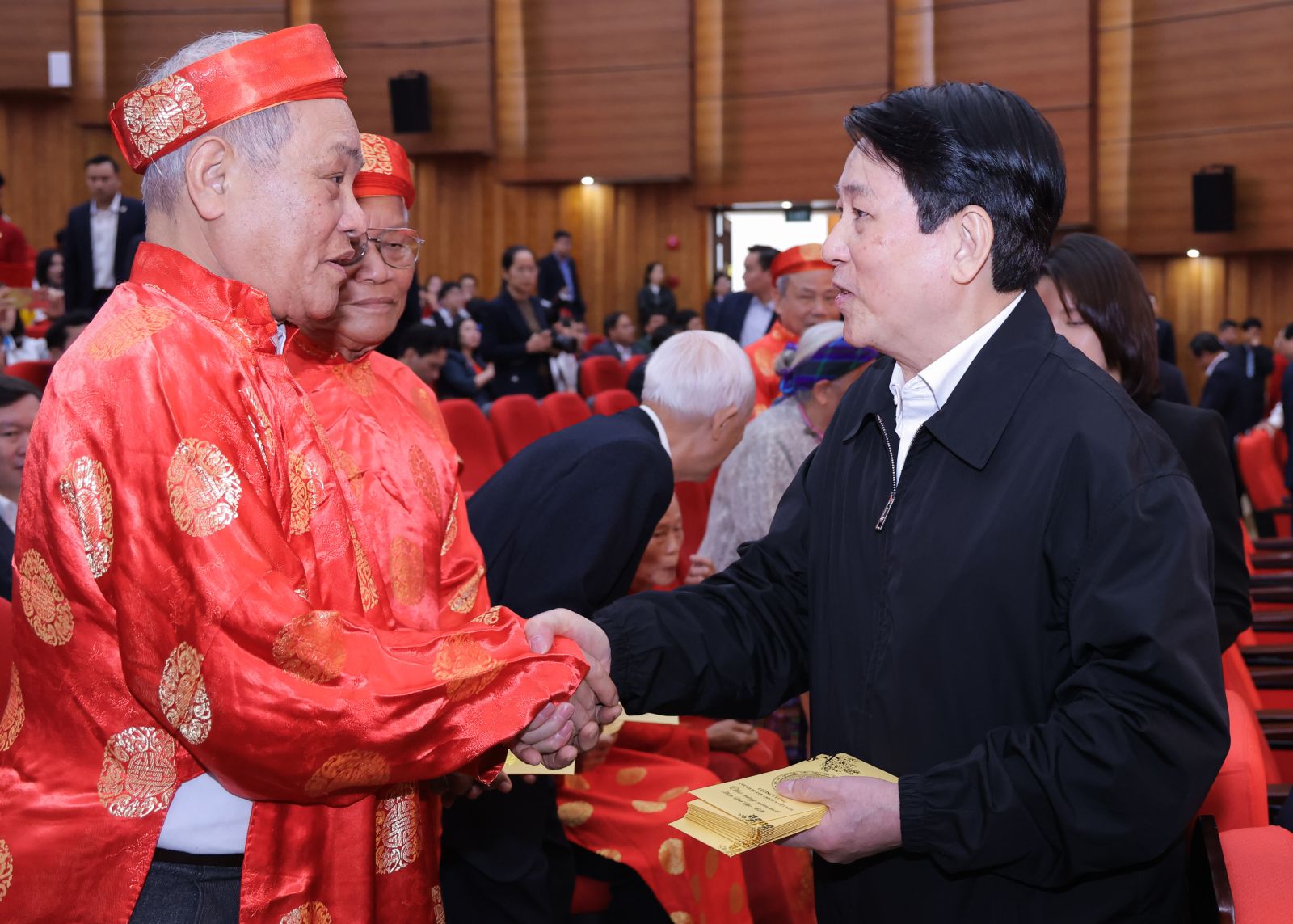 Chủ tịch nước Lương Cường mừng tuổi, chúc Tết nhân dân các dân tộc tỉnh Lào Cai. Ảnh: VPCTN